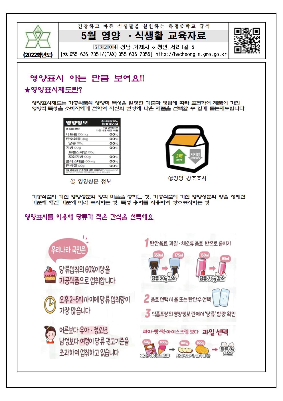 2022. 5월 식단표 및 영양·식생활 교육자료