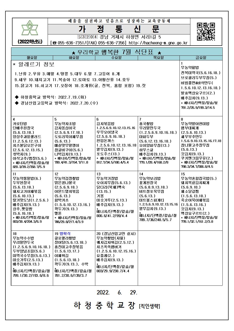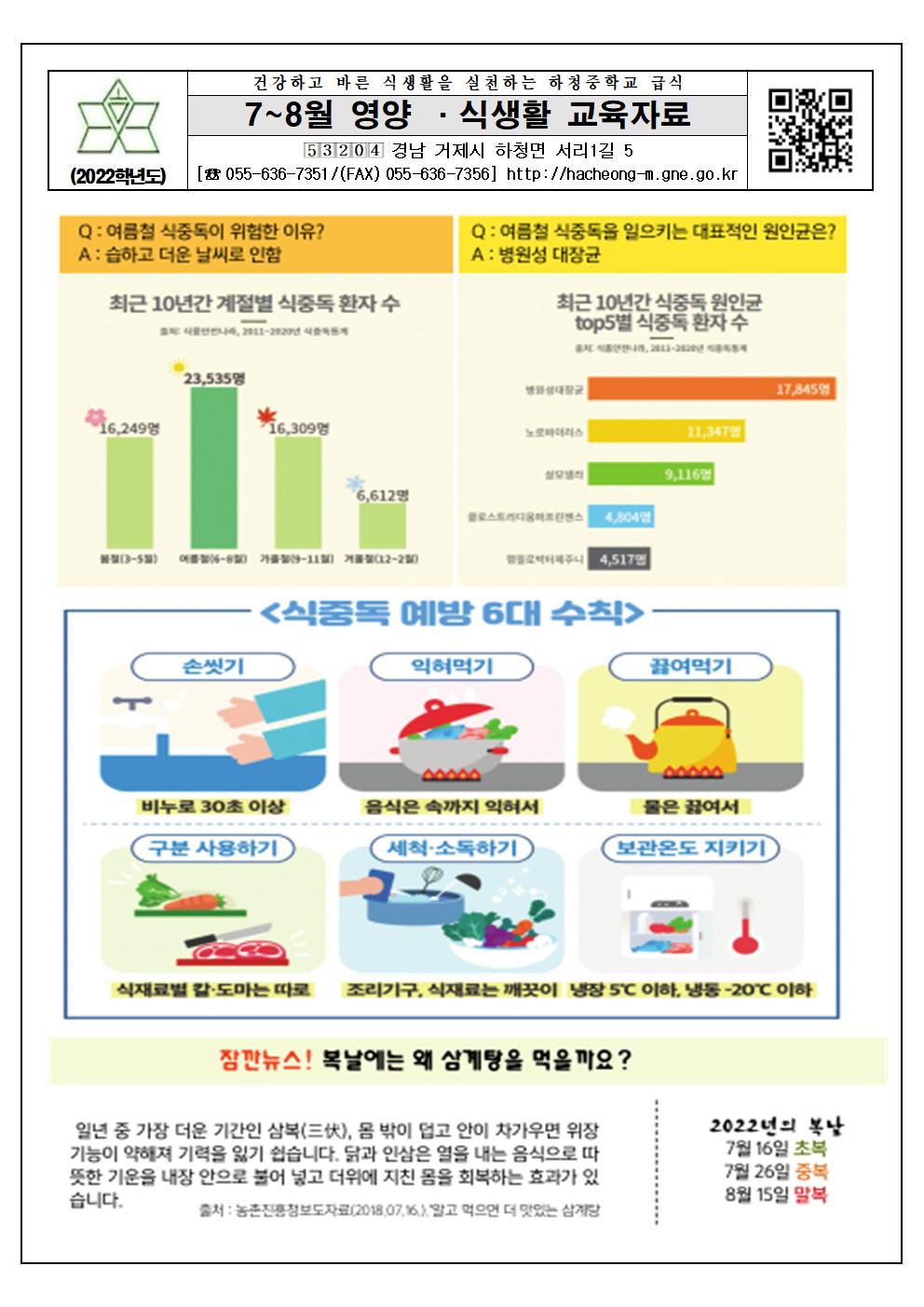 2022. 7.8월 식단표 및 영양·식생활 교육자료